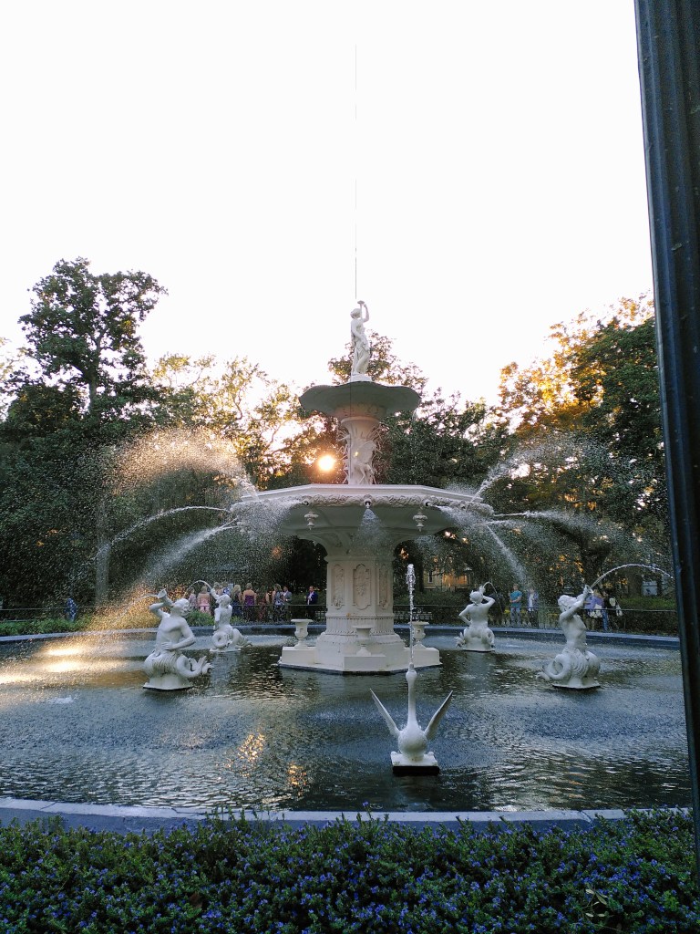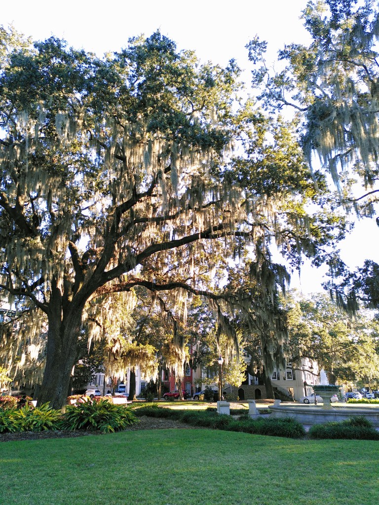 Um 16 Uhr erreichten wir schließlich Savannah und machten uns auf in die Straßen der Stadt. Savannah besteht aus einem super süßen Innenstädtchen und die Straßen sind von schmalen bunten Häusern gesäumt. In regelmäßigen Abständen finden sich sogenannte Squares, die unseren deutschen Stadtparks vermutlich am nächsten kommen. Die Plätze beherbergen oftmals Denkmäler oder Brunnen und die Bäume ringsherum sehen fast schon magisch aus.