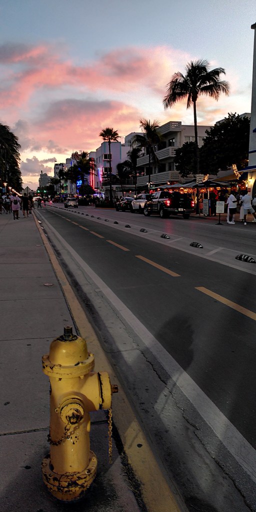 Nachdem wir an unserem letzten Nachmittag die Koffer gepackt hatten, machten wir uns erneut auf, um den Ocean Drive in der Dämmerung zu erkunden, bevor wir einen wirklich tollen Italiener im Espanola Way entdeckten!