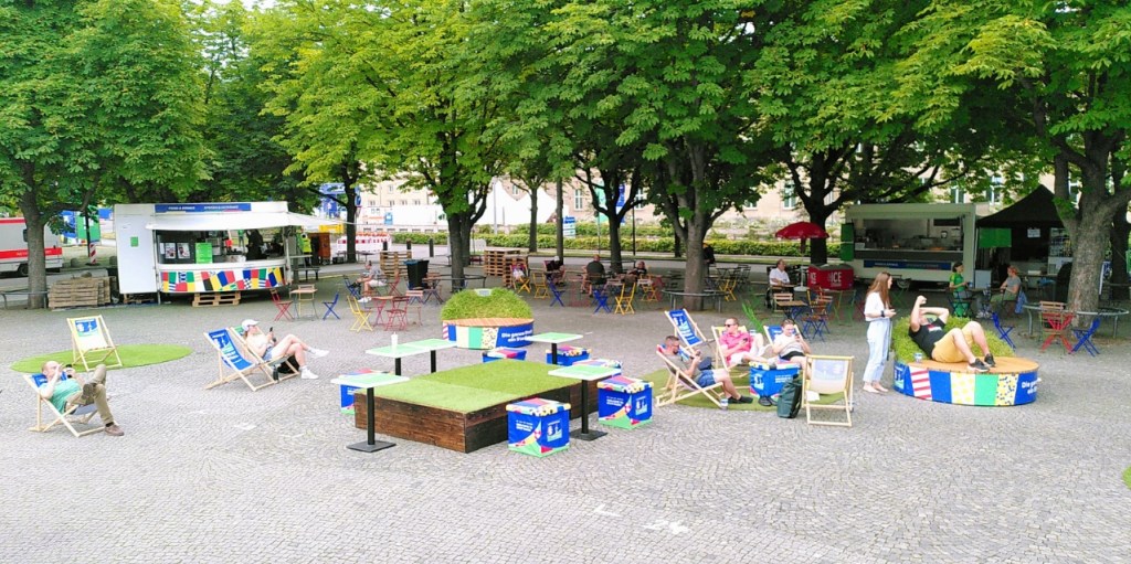 Bevor meine Schicht beginnt, genieße ich das schöne Wetter auf dem Karlsplatz, um anschließend ins Volunteer City Hub zu gehen.